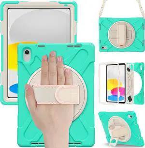iPad 10th Generation Case 2022 10.9 Inch Model A2696 A2757 A2777 Shockproof Cover with Pencil Holder Stand Hand Strap Shoulder Belt Green