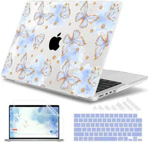 May Chen Case for MacBook Pro 14 inch, Models A2442 A2779 A2918 A2992 A3401 A3185 A3112 A3434, M1 M2 M3 M4 M5 Chip (2021-2025 Release), Plastic Hard Shell Case with Keyboard Cover, Blue Butterfly