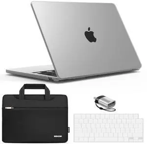 IBENZER Compatible with 2025 2024 2023 2022 MacBook Air 13 inch case M4 A3240 M3 A3113 M2 A2681, Hard Shell Case & Sleeve & Keyboard Cover & Type-C Adapter for Mac Air 13.6, Frost Clear, KK-CL+3
