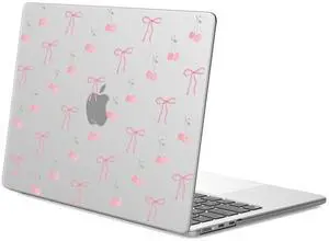 JOYLAND Cute Bowknot Cherry Case Compatible with MacBook Air 13 Inch A1932/A2179/A2337 Pink Bow Ribbon Printed Hard Shell Cover Protective Laptop Case for MacBook Air 13.3"