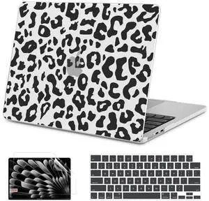 AKIT Compatible with MacBook Air 13 inch Case 2025 2024-2022 M4/M3/M2 A3240 A3113 A2681, Unique Pattern Hard Shell Case+Screen Protector+Keyboard Cover for MacBook Air 13.6 inch 2025, Black Leopard 2
