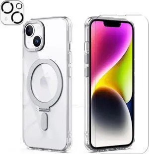 For iPhone 14 Plus 6.7 inch Case with Magnetic Invisible Stand [Compatible with Magsafe] Shockproof Slim Translucent Matte Cover [Tempered Glass Screen Protector + Camera Lens Protector]