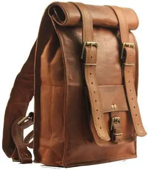 URBAN DEZIRE Men's Leather Vintage Roll On Laptop Backpack Rucksack knapsack college bag