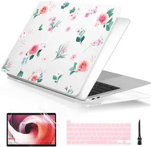 Batianda Case for MacBook Pro 13 inch 2022 M2 Chip and Model A2338 M1 A2251 A2289 2021 2020 Release,Floral Series Hard Matte Shell with Keyboard Cover & Screen Protector, Peach Rose