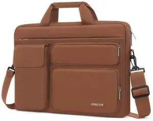 MOSISO 360 Protective Laptop Shoulder Bag,15 inch Computer Bag Compatible with MacBook Air M4 M3 M2/Pro A1990 A1707, Dell XPS Plus,Side Open Messenger Bag with 4 Zipper Pockets&Handle, Carob Brown