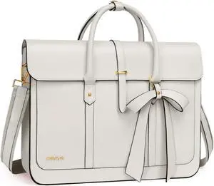 MOSISO Laptop Bag for Women, 13-14 inch PU Leather Laptop Shoulder Bags Convertible Backpack, 13.3 inch Messenger Bags Casual Handbag Work Briefcase Travel Computer Bag with Bowknot, Beige
