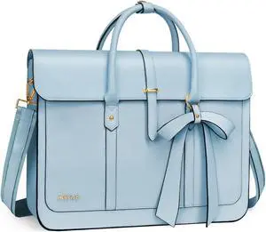 MOSISO Laptop Bag for Women, 13-14 inch PU Leather Laptop Shoulder Bags Convertible Backpack, 13.3 inch Messenger Bags Casual Handbag Work Briefcase Travel Computer Bag with Bowknot, Air Blue