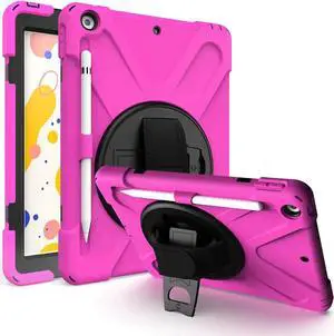New iPad 9.7 2017 2018 Case,360 Degree Rotatable with Kickstand,Hand Strap and Shoulder Strap case, 3 Layer Hybrid Heavy Duty Shockproof case for iPad 9.7 5th/6th Generation