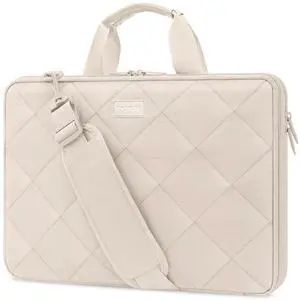 MOSISO 360 Protective Puffy Laptop Shoulder Bag,15-15.6 inch Computer Messenger Bag Compatible with MacBook Pro 16 inch, HP, Dell, Lenovo,Asus Notebook with Horizontal pocket&Small Case&Belt, Sand