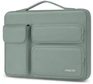 MOSISO 360 Protective Laptop Case 13.3 inch, 13-13.3 inch Laptop Sleeve Compatible with MacBook Air/Pro 13 / Pro 14, HP Dell ASUS Lenovo,Side Open Bag with 2 Raised&1 Flapover Pockets, Antique Green