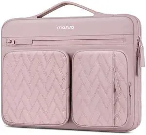 MOSISO 360 Protective Laptop Case 13.3 inch, 13-14 inch Laptop Sleeve Compatible with MacBook Air 13.6/Pro 13/Pro 14,HP Dell ASUS Lenovo, Parallelogram Quilted Bag with Raised&Horizontal Pockets, Pink