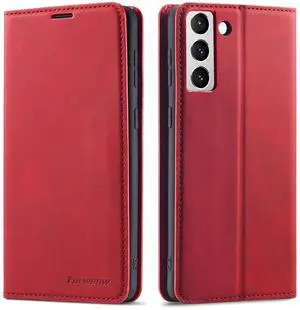 Case for Samsung Galaxy S25 Plus 6.7 inch Premium PU Leather Phone Cover with Card Holder Stand, Shockproof Flip Wallet Cover Red