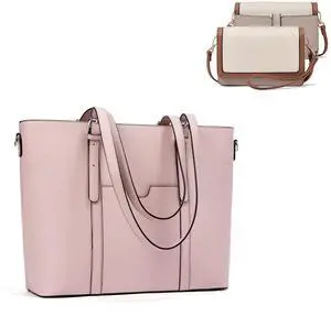 BROMEN Women Briefcase 15.6 inch Laptop Tote Bag Pink and Women Crossbody Bags Wristlet Wallet Grey Purple with Beige Bundle