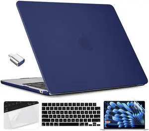 TWOLSKOO Compatible with M4 MacBook Air 15 inch Case 2025-2023 Release M4 A3241 M3 A3114 M2 A2941, Plastic Hard Shell&Screen Protector&Keyboard Cover&Trackpad Film&Type C Adapter, Navy Blue