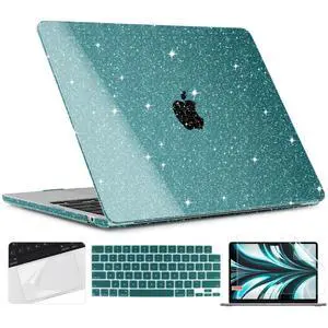 MecBevia Compatible with MacBook Air 13.6 inch Case, M4 A3240/M3 A3113/M2 A2681 (Released 2025 to 2022), Hard Shell, Keyboard Cover, Screen Protector, Webcam Cover & Type-C Adapter, Sparkly Black