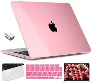 TWOLSKOO Compatible with M4 MacBook Air 15 inch Case 2025-2023 Release M4 A3241 M3 A3114 M2 A2941, Plastic Hard Shell&Screen Protector&Keyboard Cover&Trackpad Film&Type C Adapter, Crystal Pink