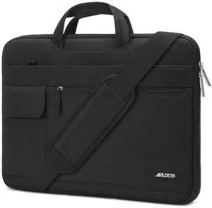 MOSISO Laptop Shoulder Bag Compatible with MacBook Air/Pro,13-13.3 inch, 14 inch Notebook, 2023-2021 A2779 M2 A2442 M1,Polyester Flapover Briefcase Sleeve Case, Black