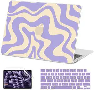 AKIT Compatible with MacBook Air 13 Inch Case M1 2022 2021 2020 2019 2018 A2337 A2179 A1932, Pattern Hard Shell Laptop Case+Screen Protector+Keyboard Cover for Mac Book Air 13.3 Inch, Violet Wave