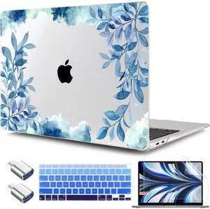 Teryeefi for MacBook Air M4 M3 M2 13.6 inch Case 2025 2024-2022,Fit Model A3240 A3113 A2681, Laptop Hard Shell Cases with Keyboard Cover & Screen Protector for MacBook Air 13.6", Blue Plant Flower