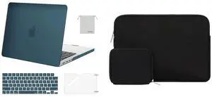MOSISO Compatible with MacBook Pro 14 inch Case 2021 2022 Release A2442 M1, Neoprene Sleeve Bag&Plastic Hard Cased&Keyboard Cover&Screen Protector&Storage Bag, Deep Teal&Black