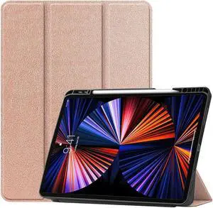 WERLEO Case for iPad Pro 12.9 Inch 2022/2021/2020/2018 (6th/5th/4th/3rd Gen), Slim Smart Stand Cover Protective Cover with Pencil Holder, Stand, Universal Stylus Pen,Support Pencil Charging Rose Gold