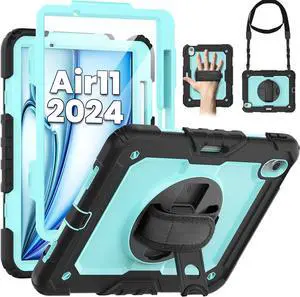 BONAEVER Case for iPad Air 11 inch 7th 6th Generation M3 M2 2025 2024, Heavy Duty Shockproof Protective Cover with Screen Protector, Stand and Hand/Shoulder Strap Light Blue