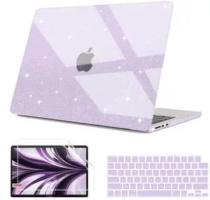 B BELK Compatible with MacBook Air 13 inch Case 2025 2024 2023 2022 M4 M3 M2 A3240 A3113 A2681,Glitter Plastic Hard Shell+Keyboard Cover+Screen Protector for MacBook Air 13.6 inch Case, Sparkly Purple