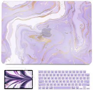 B BELK Compatible with MacBook Air 13 inch Case 2025 2024 2023 2022 M4 M3 M2 A3240 A3113 A2681, Plastic Hard Shell+Keyboard Cover+Screen Protector for MacBook Air 13.6 inch Case, Purple Gold Marble