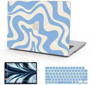 B BELK Compatible with MacBook Air 13 inch Case 2025 2024 2023 2022 Release M4 M3 M2 A3240 A3113 A2681, Plastic Hard Shell +Keyboard Cover +Screen Protector for MacBook Air 13.6 inch Case, Blue Wave