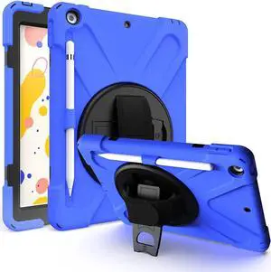 New iPad 10.2 Case 2019 iPad 7th Generation Case Cover with Pencil Holder / Rotatable Stand / Hand Strap and Shoulder Belt Shockproof Case for iPad 10.2 inch 2019 Tablet A2197 A2198 A2200 Blue