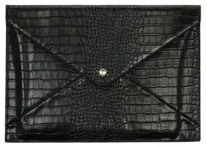 Heaven Mayhem Laptop Sleeve 15.25" x 10.5" Black Crocodile-Textured Faux Leather Case Sleek Envelope-Style Protection with Gold Logo Fits Most Laptop Models