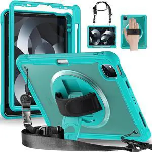 Case for Apple iPad Air 11 inch (M4/M3/M2)/ Air 5th/4th Gen 10.9"/ Pro 11 inch 4th/3rd/2nd/1st Gen, Shockproof Protective Kids Case with Pencil Holder, Rotating Hand Strap & Stand