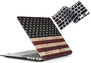 RUBAN Case Compatible with MacBook Air 13 Inch (Models: A1369 & A1466, Older Version 2010-2017 Release), Slim Snap On Hard Shell Protective Cover and Keyboard Cover, American Flag