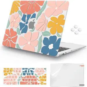 AMCJJ Compatible with MacBook Air 13 Inch Case 2017 2016 2015 2014 2013 2012 2011 2010 Release A1466/A1369, Plastic Hard Shell Case + Keyboard Cover + Screen Protector - Flowers