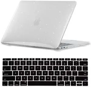 Laptop Case Compatible with MacBook Air 13 inch Case 2010-2017 Release Model A1466 A1369, Glitter Sparkle Pattern Translucent Plastic Shell Cover & Keyboard Cover Skin - White
