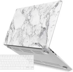 RUBAN Case Compatible with MacBook Air 13 Inch (Models: A1369 & A1466, Older Version 2010-2017 Release), Slim Snap On Hard Shell Protective Cover and Keyboard Cover (White Marble)