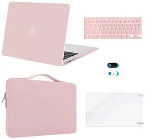 MOSISO Compatible with MacBook Air 13 inch Case A1369 A1466 2010-2017, Plastic Hard Case & 360 Protective Sleeve Bag with 2 Pockets&Handle & Keyboard Cover & Screen Protector, Rose Quartz&Chalk Pink