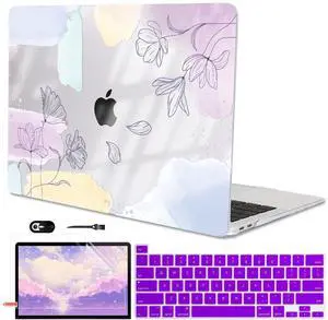 LCMOCICO for MacBook Pro 13 inch Case 2022 2021 2020-2016 A2338 M2/M1 A2251 A2289 A2159 A1989 A1706 Touch ID, Plastic Hard Shell Case Keyboard Skin Screen Film Webcam Cover, Watercolor Line Flowers