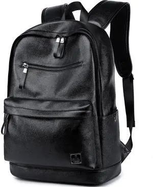 weiatas Black Leather Laptop Backpack for Men Women Work Travel, College School Backpack Casual Daypack fits 15.6 Inch