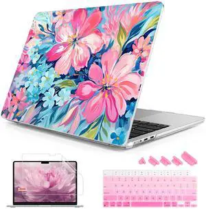 Mektron for 2025-2022 MacBook Air 13.6 inch Case M4 M3 M2Model A3240 A3113 A2681 with Liquid Retina Display Touch IDPrinted Bright Hard Shell Cover for MacBook Air 13.6"Hand-Painted Flowers
