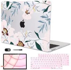MecBevia Compatible with MacBook Air 13.6 inch Case, M4 A3240/M3 A3113/M2 A2681 (Released 2025 to 2022), Hard Shell, Keyboard Cover, Screen Protector, Webcam Cover & Type-C Adapter, Vector Flower