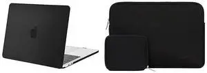 MOSISO Compatible with MacBook Pro 13 inch Case 2016-2020 Release A2338 M1 A2289 A2251 A2159 A1989 A1706 A1708, Plastic Hard Shell & Neoprene Sleeve Bag with Small Case, Black