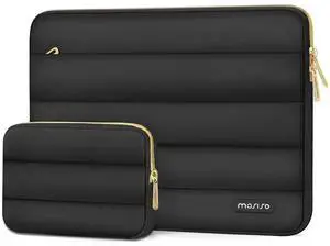 MOSISO 13.3 inch Laptop Case, 13-13.3 inch Puffy Laptop Sleeve Compatible with MacBook Air 13 13.6 M4 M3 M2 M1/Pro 13/Pro 14, HP Dell ASUS Lenovo,Polyester Horizontal Bag with Small Case, Black