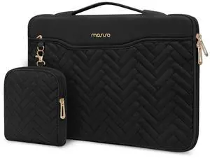 MOSISO 13.3 inch 360 Protective Laptop Case, 13-13.3 inch Laptop Sleeve Compatible with MacBook Air/Pro 13 13.6/Pro 14, HP Dell ASUS, Rectangle Quilted Bag with Handle&Pocket&Small Case, Black