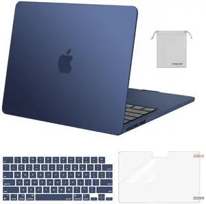 MOSISO Compatible with MacBook Air 15 inch Case M4 M3 M2 2025 2024 2023 Release A3241 A3114 A2941 with Touch ID, Plastic Hard Shell Case&Keyboard Cover&Screen Protector&Storage Bag, Navy Blue