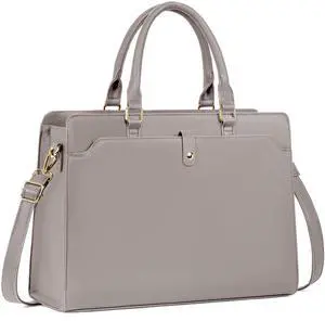 GMAK Laptop Tote Bag for Women, 15.6 Inch Leather Computer Bags Lightweight Business Office Work Briefcase Large Capacity Waterproof Handbag for Daily Commute Travel Work, Grey