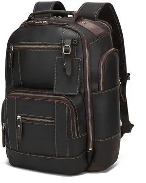 LANNSYNE Vintage Genuine Leather Backpack for men, 15.6" Laptop Backpack Travel Camping 24L Rucksack