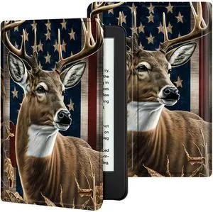 BREIDMKFM Slim for All-New Amazon Fire HD 10 and Fire HD 10 Plus Tablet Case (Only Fit 13th Generation 2023 Release), Smart Standing Cover with Auto Sleep/Wake, Deer with American Flag