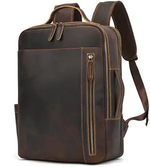 TIDING Leather Backpack 15.6 inch Laptop Backpack Vintage Business Travel Bag Large Capacity Daypacks