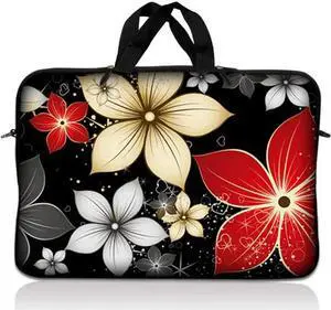 LSS 10.2 inch Laptop Sleeve Bag Carrying Case Pouch with Handle for 8" 8.9" 9" 10" 10.2" Apple Macbook, GW, Acer, Asus, Dell, Hp, Sony, Toshiba, Black Gray Red Flower Leaves